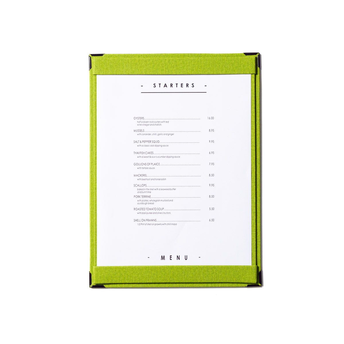 Your menu tariff board will be supplied without personalisation