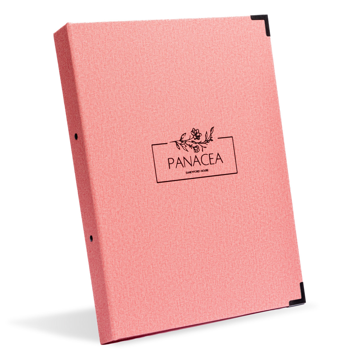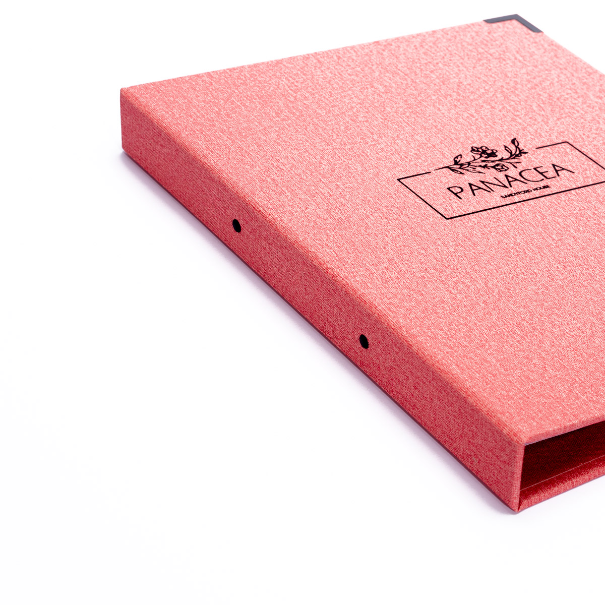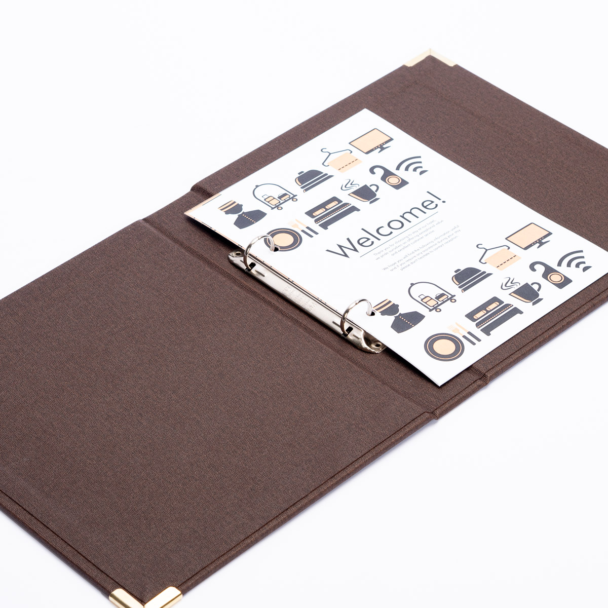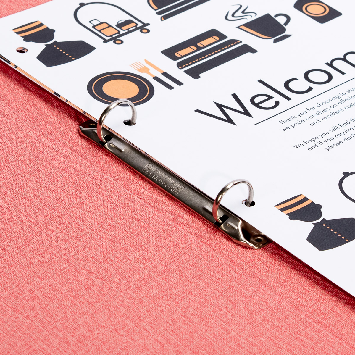 The overall dimensions of our room folders are larger than the paper size. The total size of the folder depends on the type of fixing chosen. If you need to know the exact overall dimensions of the folders please do not hesitate to get in touch with us.